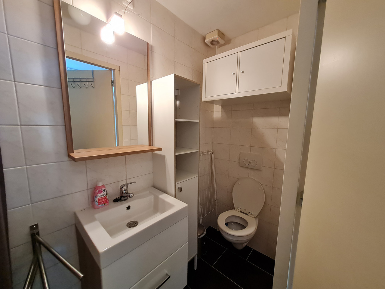 De semi-studio heeft een eigen badkamer met douche, toilet en wastafel.