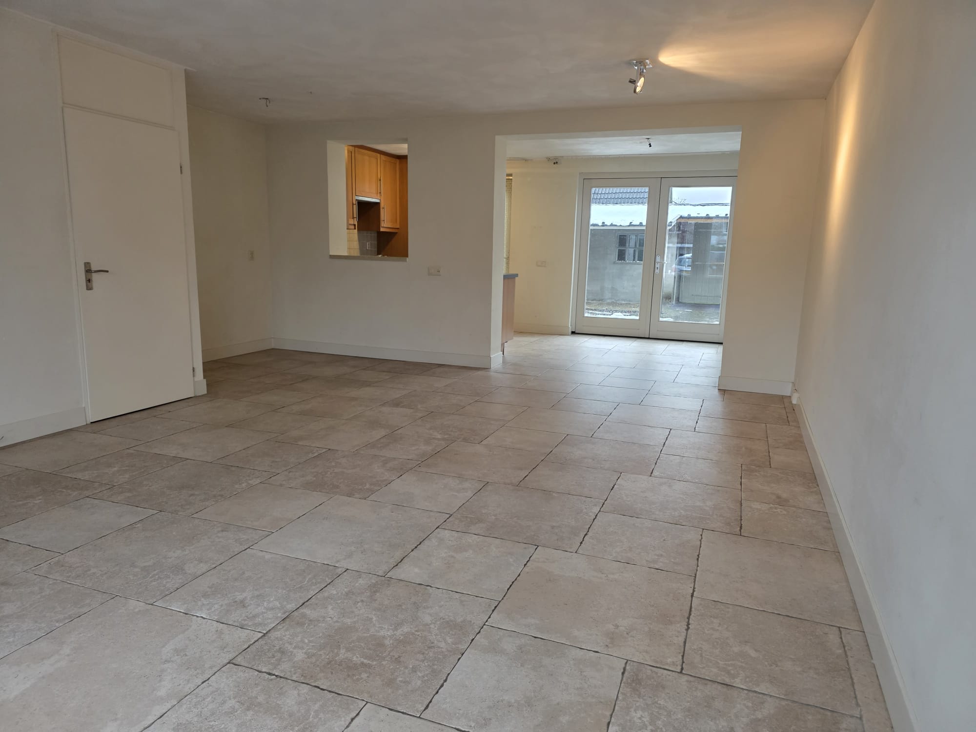 Aan de voorzijde van de woning komt u binnen in de hal welke toegang geeft tot de woonkamer. De ruime woonkamer is voorzien van een nette tegelvloer en geeft u tevens ook toegang tot de open keuken.